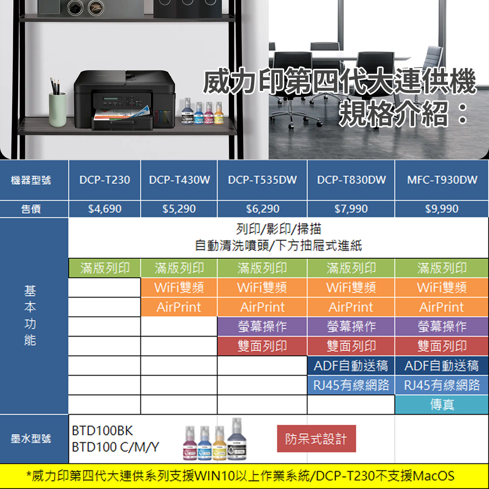 Brother DCP-T230 第四代威力印連續供墨三合一噴墨複合機