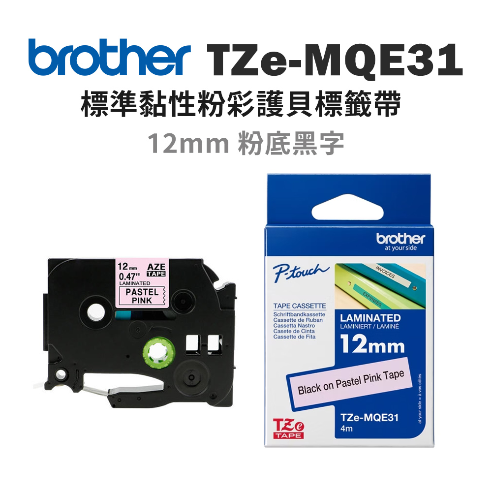 Brother TZe-MQE31 原廠粉彩護貝標籤帶 (12mm粉底黑字)優惠價:600 -