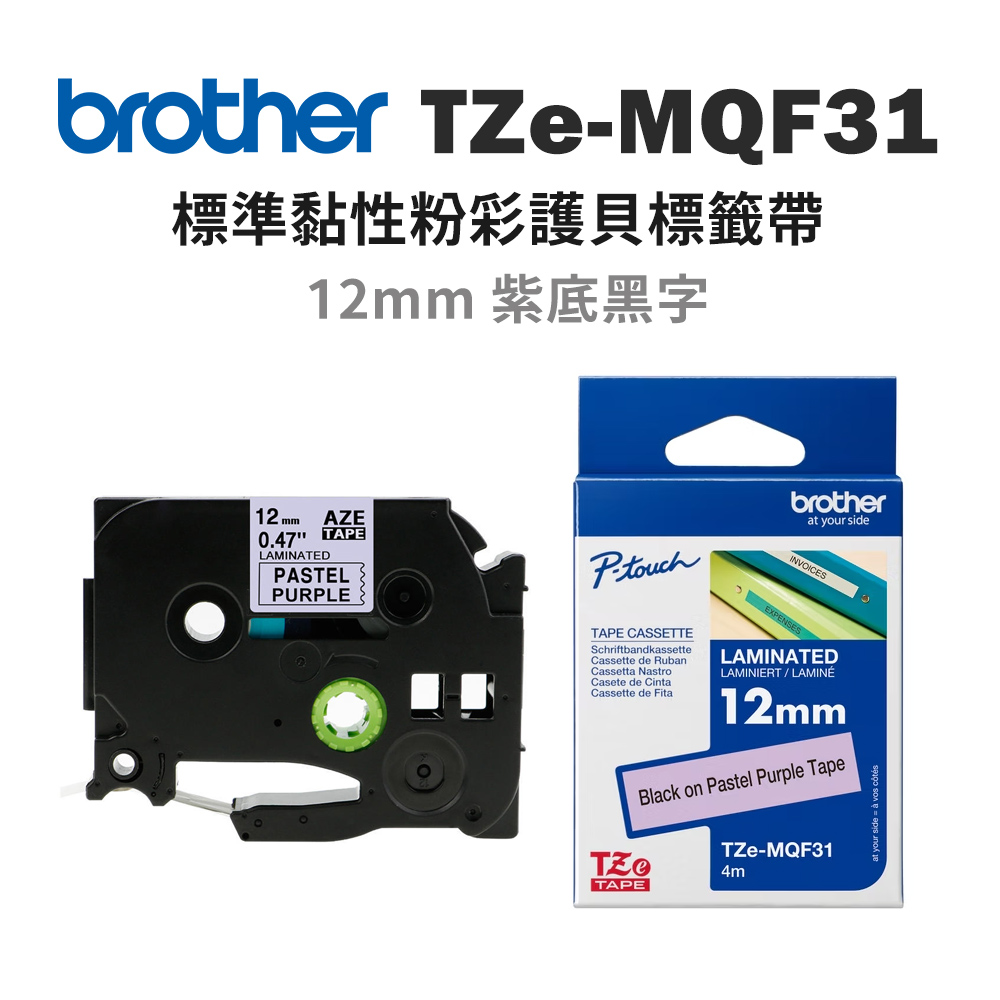 Brother TZe-MQF31 原廠粉彩護貝標籤帶 (12mm紫底黑字)優惠價:600 -